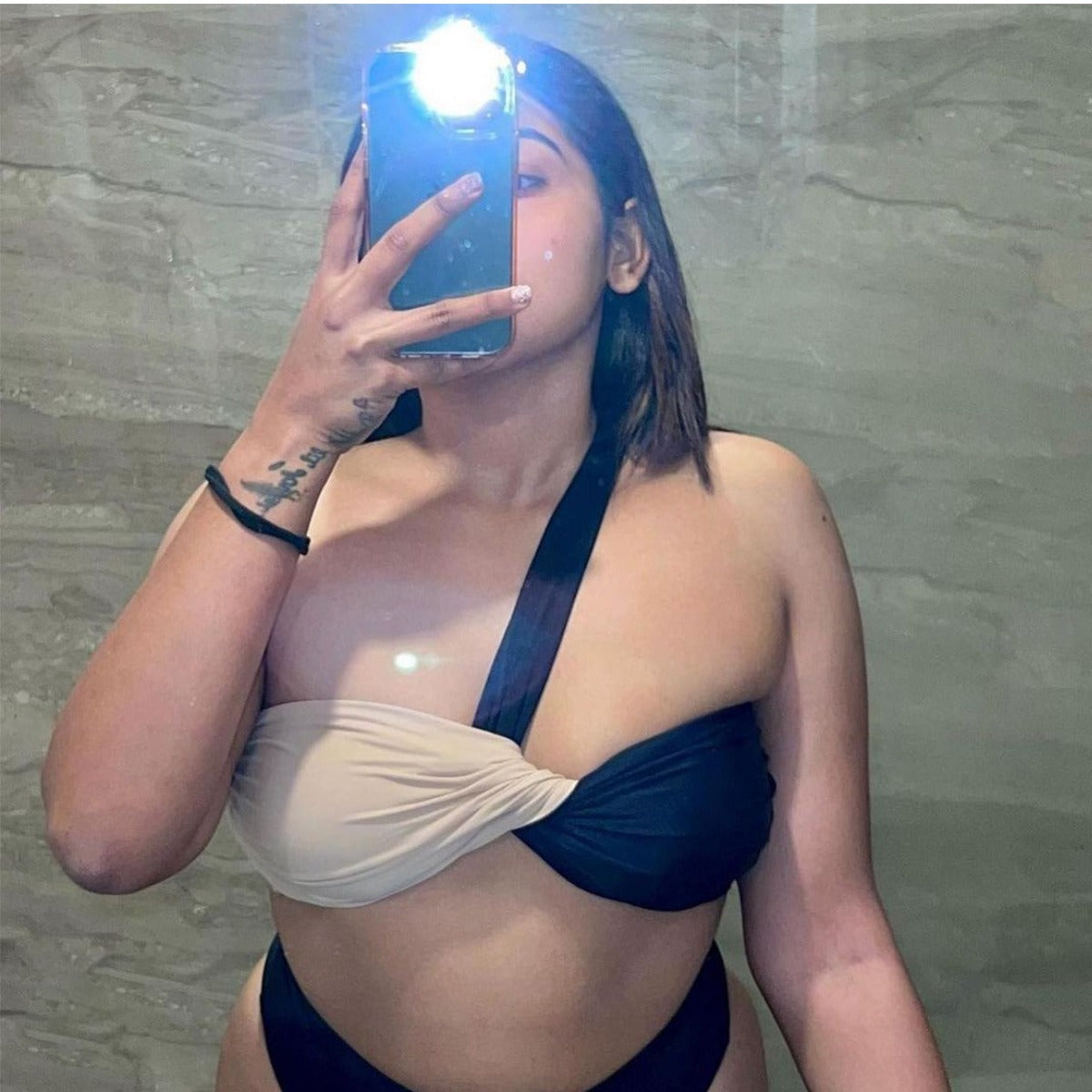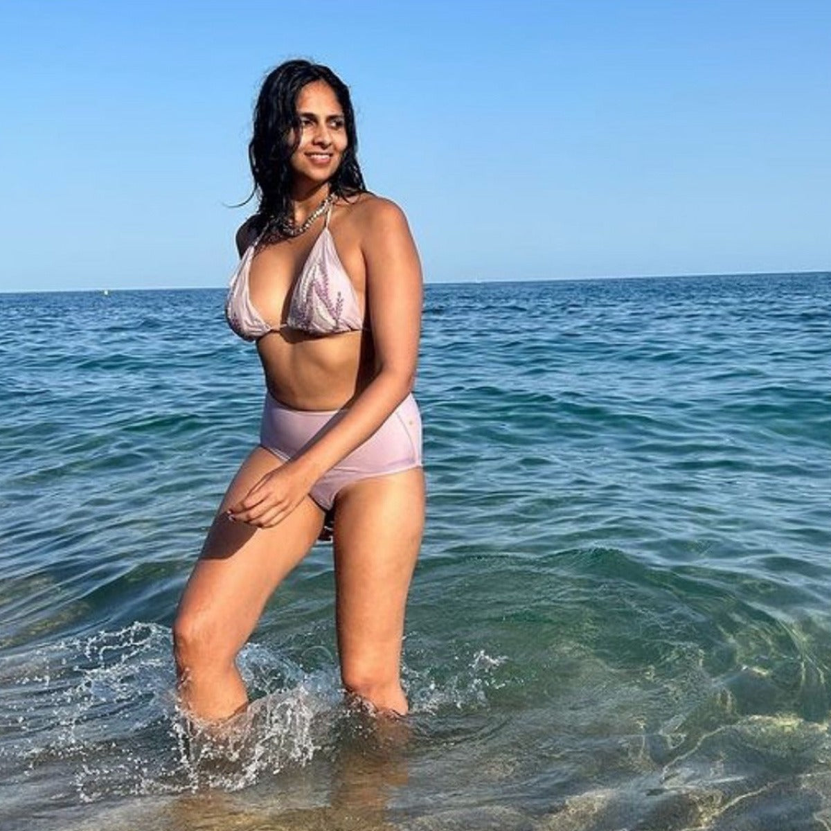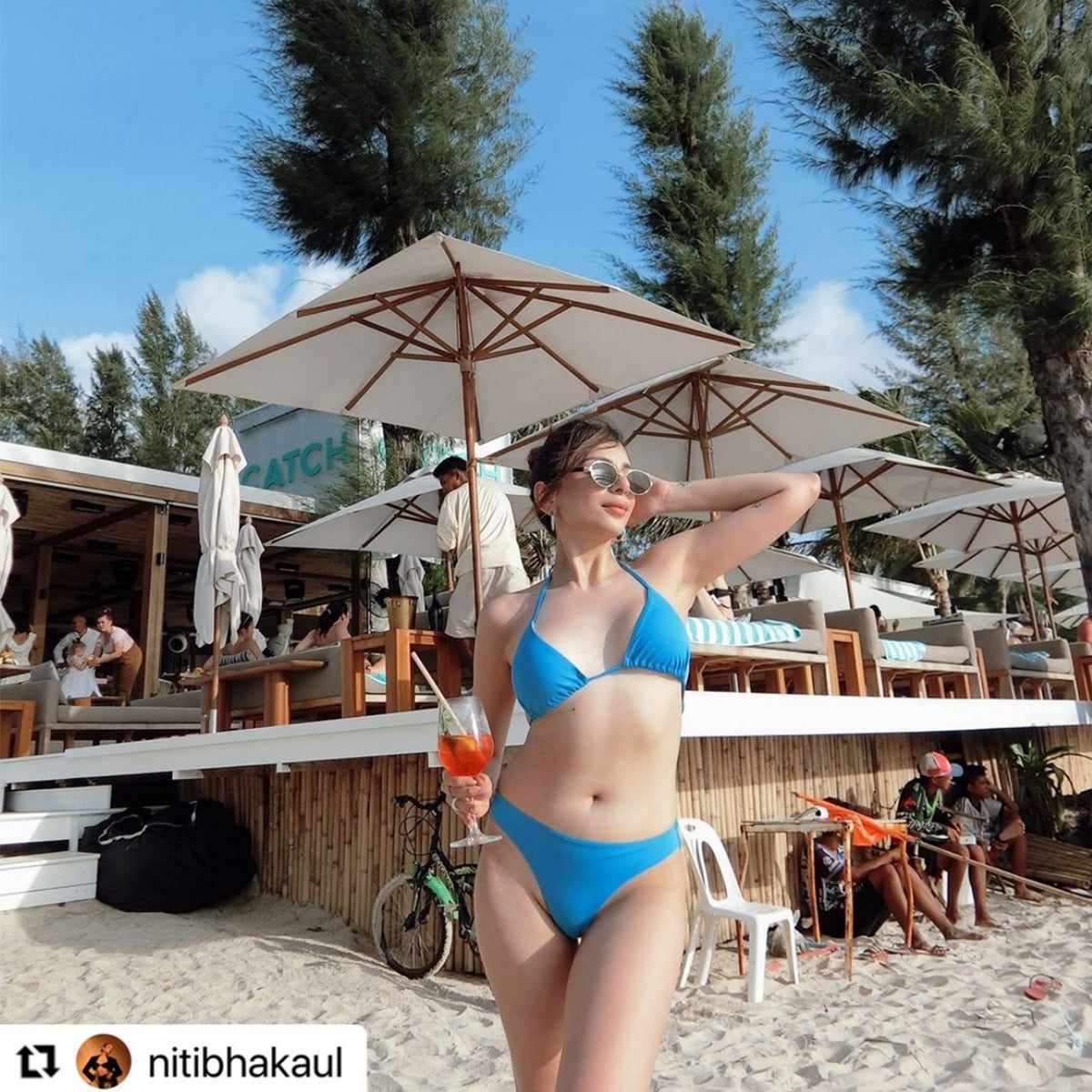 Spotted in our Custom Shell embroidered bikini top & Shimmer Shorts